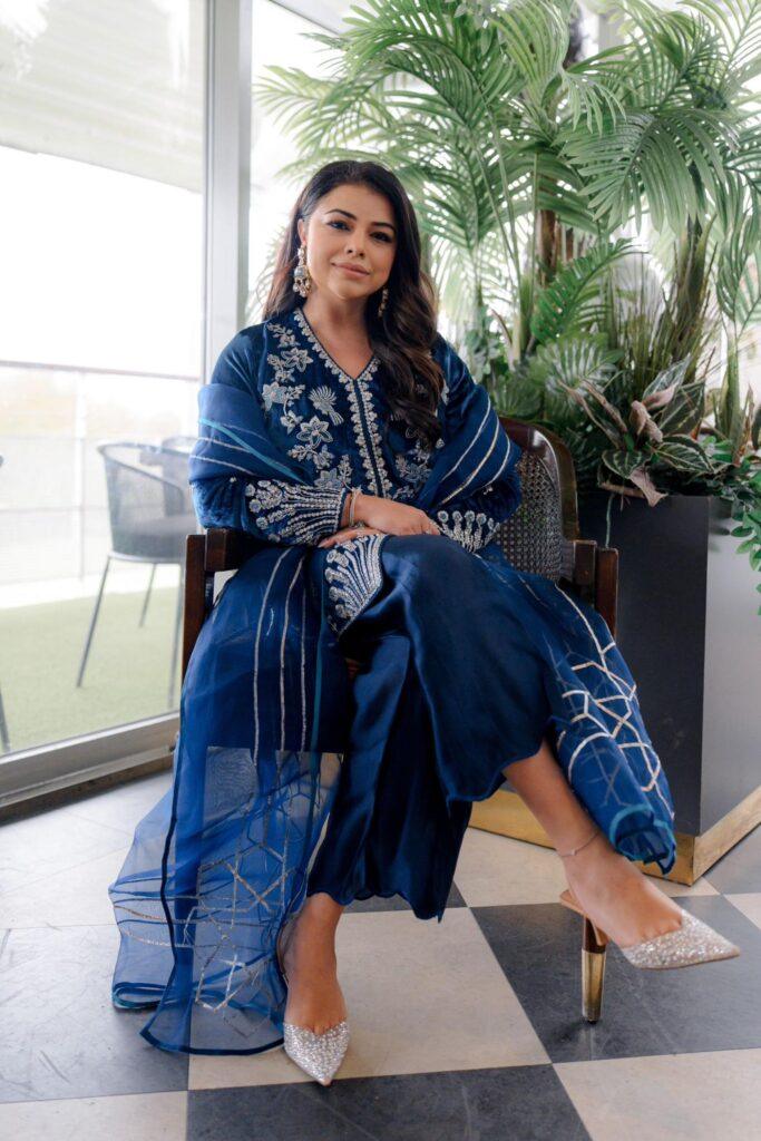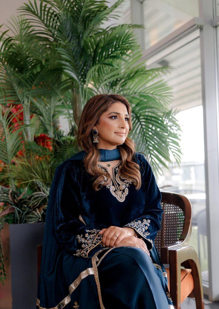 Being part of this campaign feels incredibly special, as being Hindu-Gujarati and growing up with a big family, we have always supported various cultural celebrations as part of our community and our industry networks, and it feels amazing to embrace diverse faith celebrations. I see it as an opportunity to respectfully appreciate the beauty and cultural significance behind Eid fashion. There’s so much pride and thought in how people present themselves, and it’s inspiring to be part of that, and glammed-up Pakistani designs from Khans of London and exquisite jewels by Nadia’s Collection.