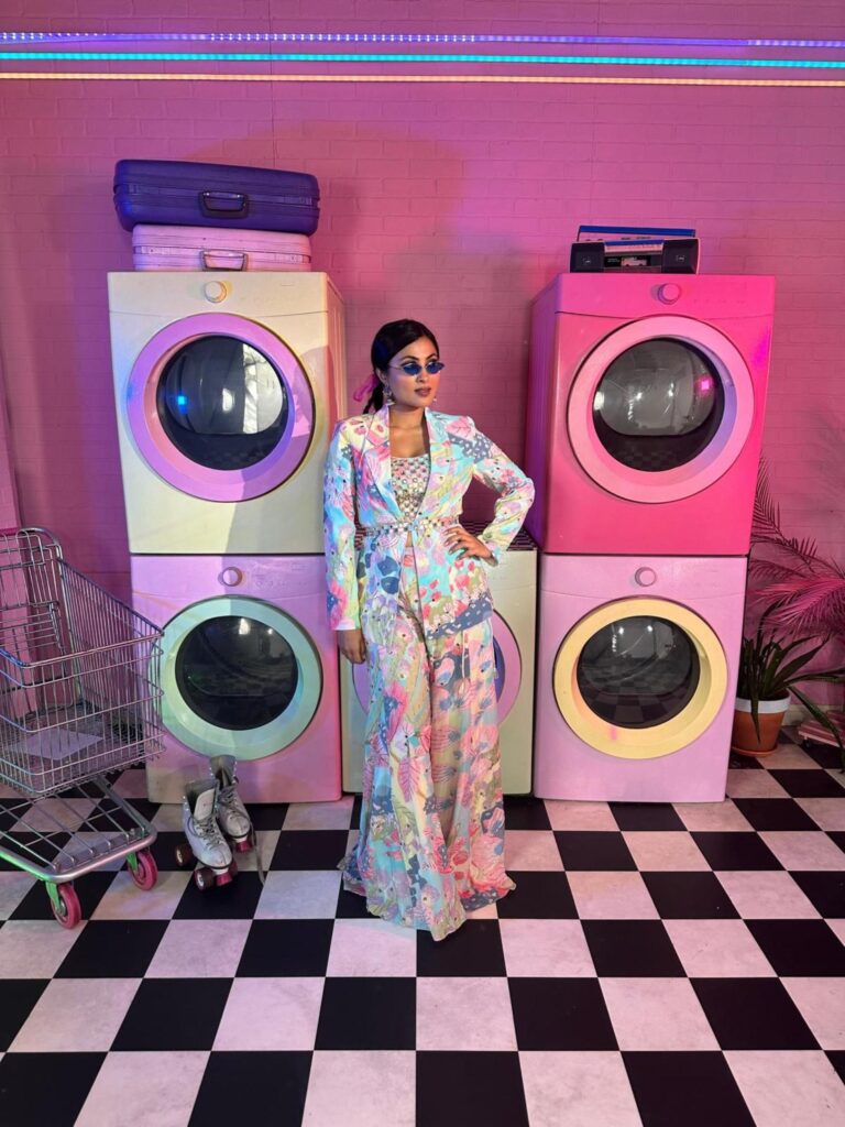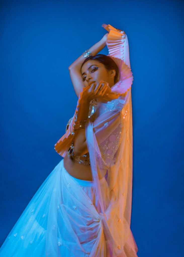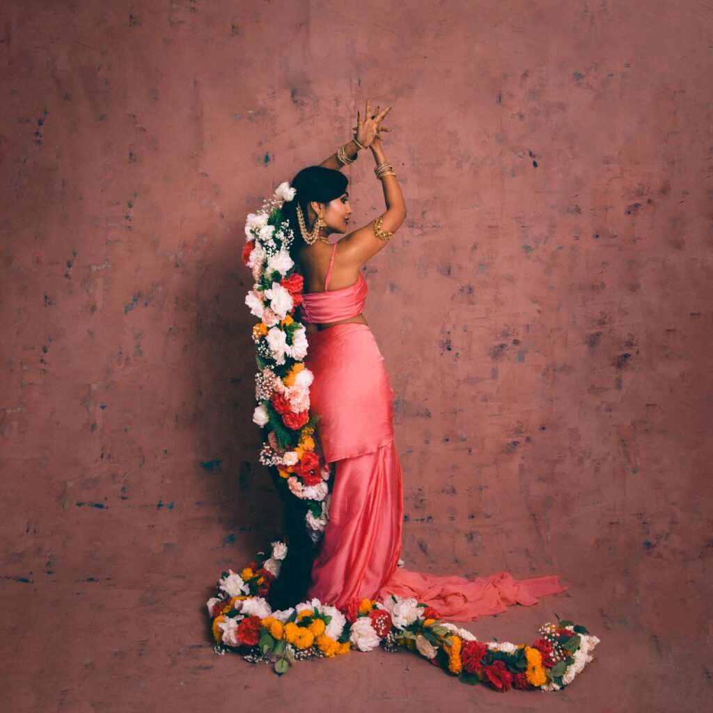 Growing up in the U.S. was difficult. It often felt like I was living between two worlds. At home, I was singing Carnatic music, bhajans, and eating Indian food; at school, I was listening to Destiny’s Child and doing everything I could to hide being Indian. It just wasn’t considered “cool” to be brown, and I remember being so embarrassed by the lunches my mom packed that I’d either skip them or eat alone. Everything shifted when I got to college. I joined dance teams, including a Garba team, and found a community that helped me reconcile both sides of myself. I realised they weren’t mutually exclusive. They could co-exist, and I could marry them through music. That was a defining moment in my early adulthood. Now, I’m proud of who I am and where I come from, and I love being able to blend both worlds into something that feels authentically mine.